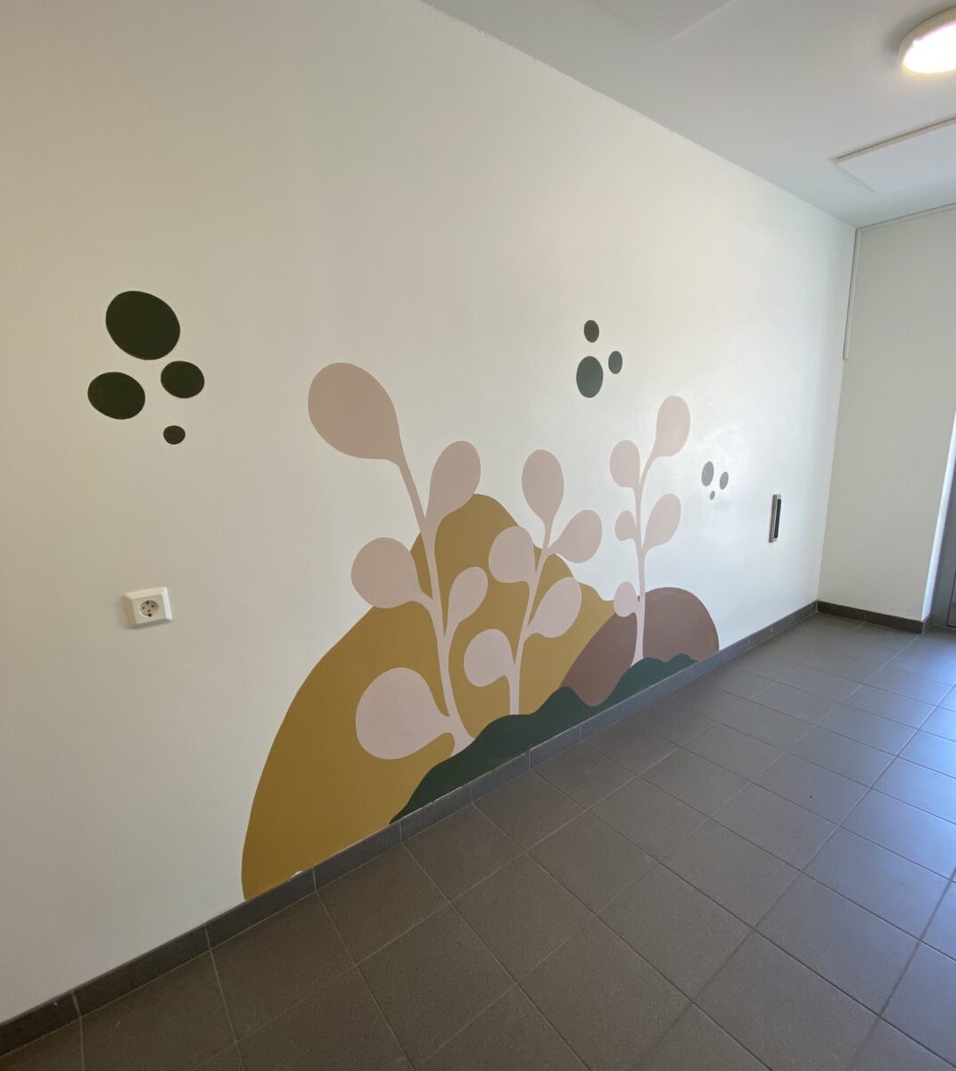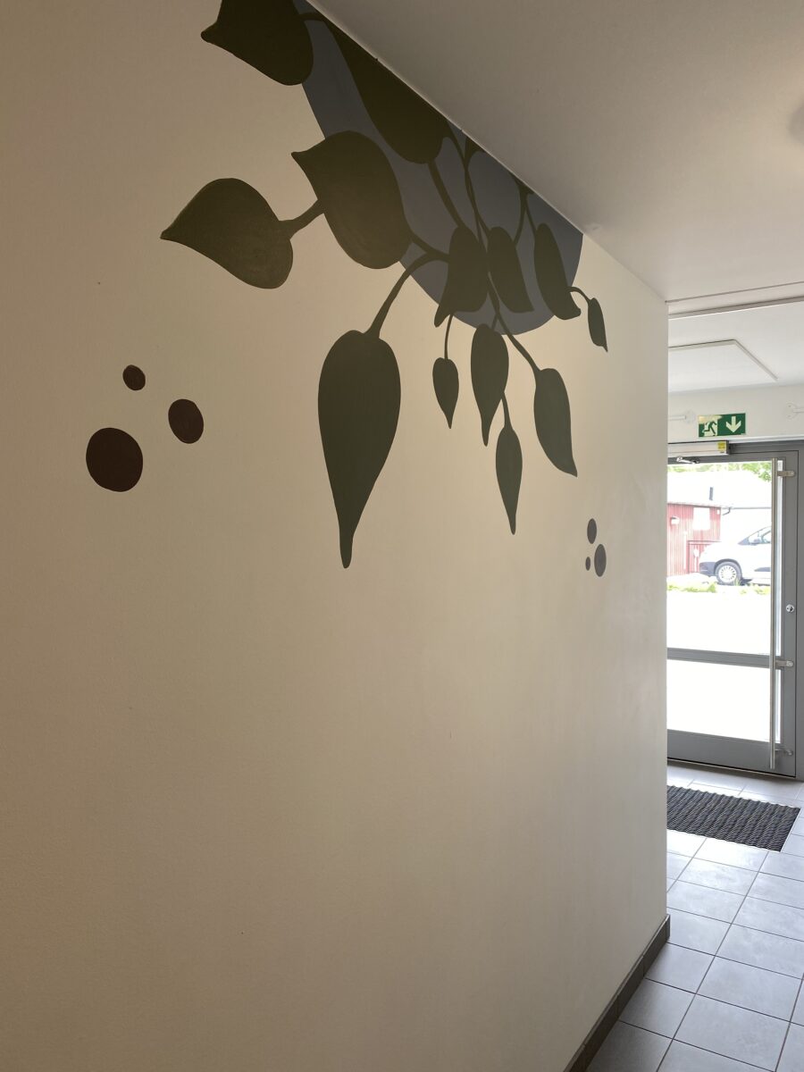 Tre trapphusentreer förvandlades under våren 2021 med hjälp av en mjuk färgpalett och inslag av blommor och växtlighet. Uppdragsgivaren var Bromöllahem som ville skapa en välkomnande känsla av hemma direkt när man kom in i trapphusen. Färgpaletten är uttagen med de befintliga färgerna samt den grafiska profilen i åtanke.
