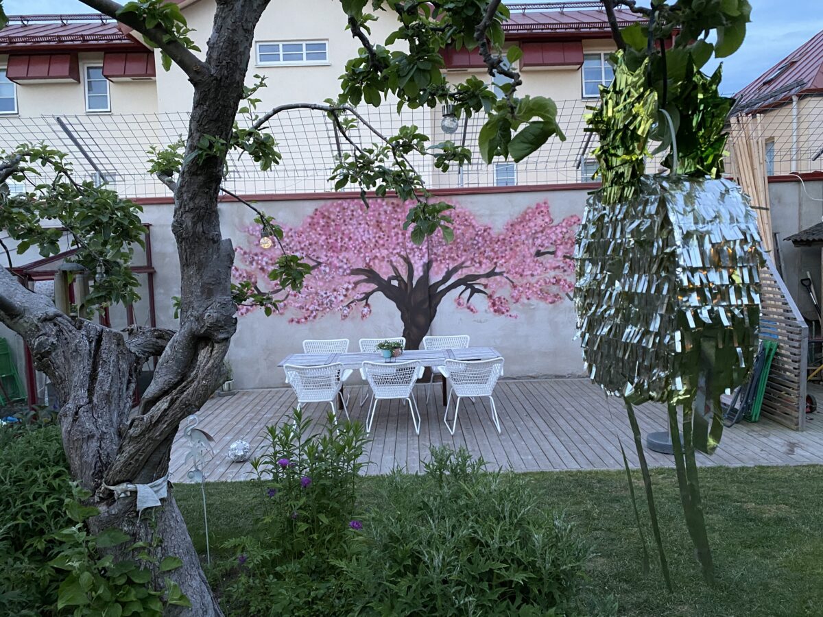 Att få frågan om man vill måla ett stort blommande körsbärsträd vid en härlig uteplats kan ju vara något av det roligaste en kan göra. Hos familjen Schill i Sölvesborg fick jag förtroendet att på frihand lägga lite kärlek på den långa putsade muren vid deras solsida.